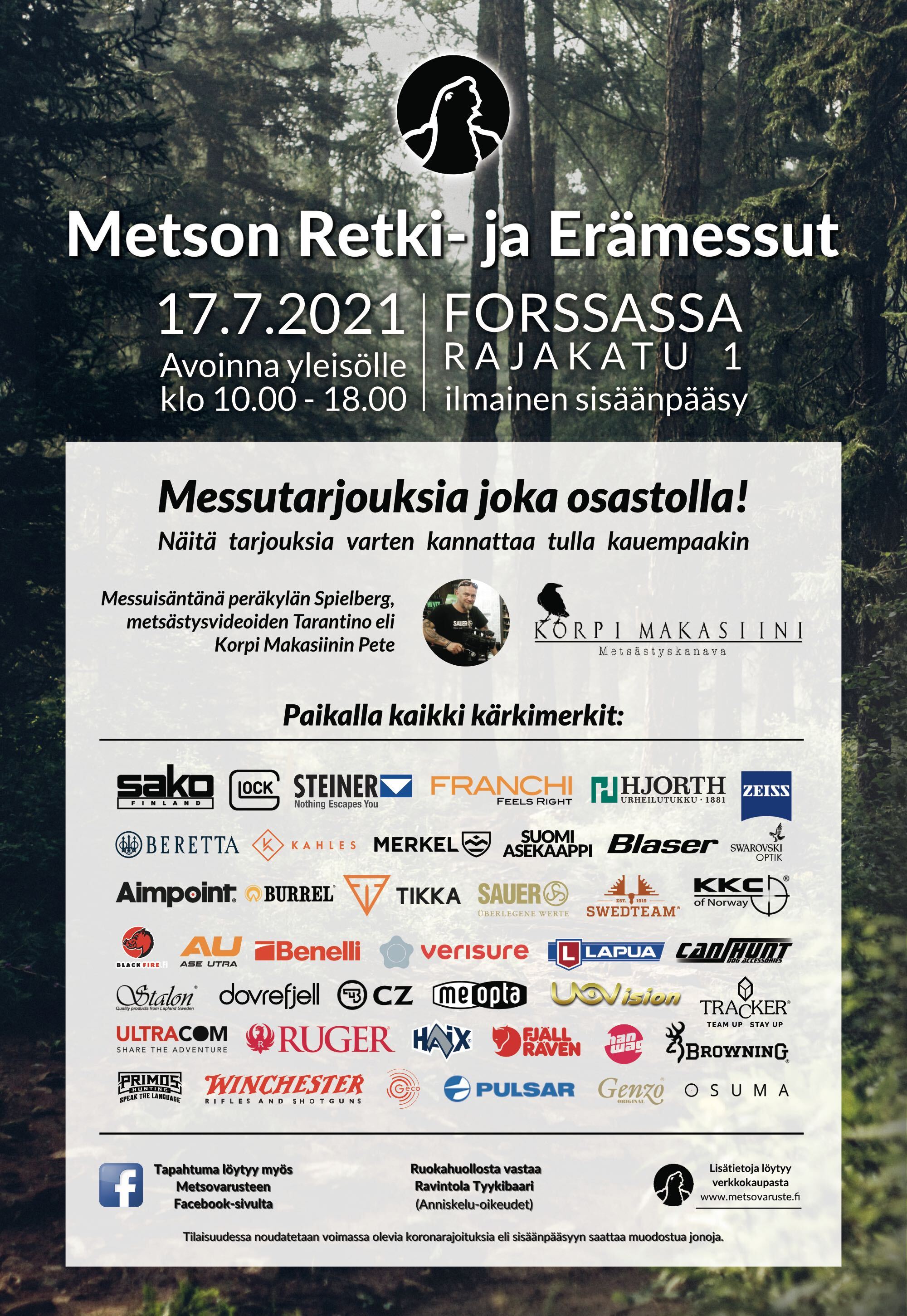 Metson Retki- ja Erämessut 17.7 2021 Forssassa. Paikalle saapuu useita alan maahantuojia ja näytteilleasettajia.
