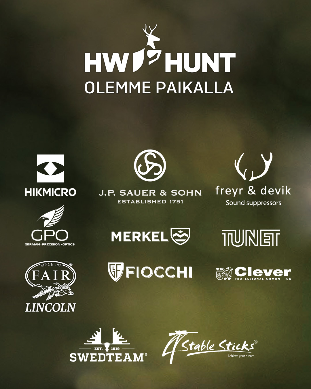 HW Hunt: Deerhunter, Freye & Devik, GPO, HIKMIKRO, Merkel, J.P. Sauer & Sohn, Swedteam, Arxus, Fiocchi ja muita merkkejä
