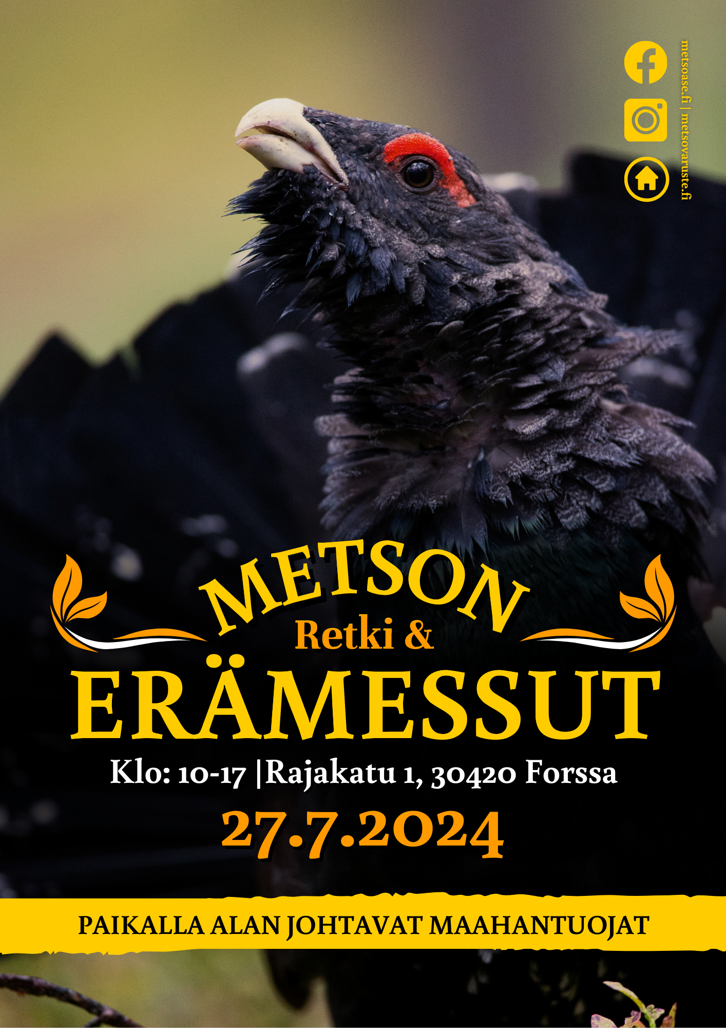 Metson Retki- ja Erämessut järjestetään 27.7.2024 Lauantaina yksipäiväisenä tapahtumana.