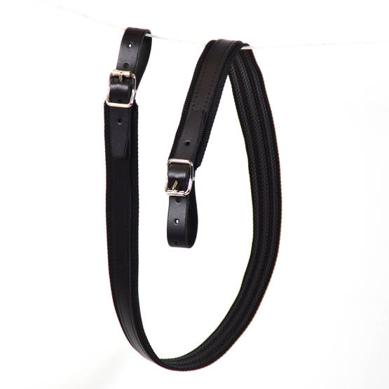 Kestävä asehihna, jossa nahalla päällystetty kumipohja.