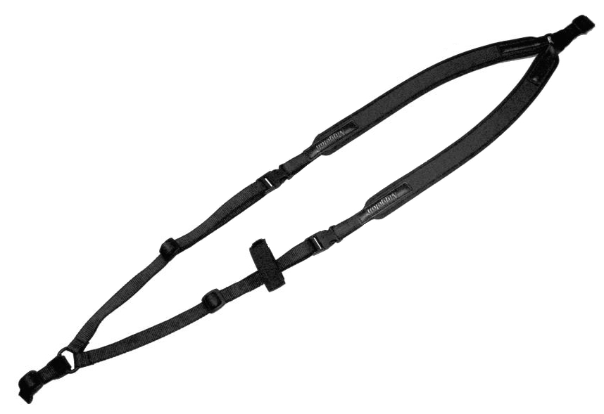 Neopreenista valmistettu Niggeloh asevaljas. Valjaissa asetta on helppo kantaa olalla tai selässä kuten reppua.