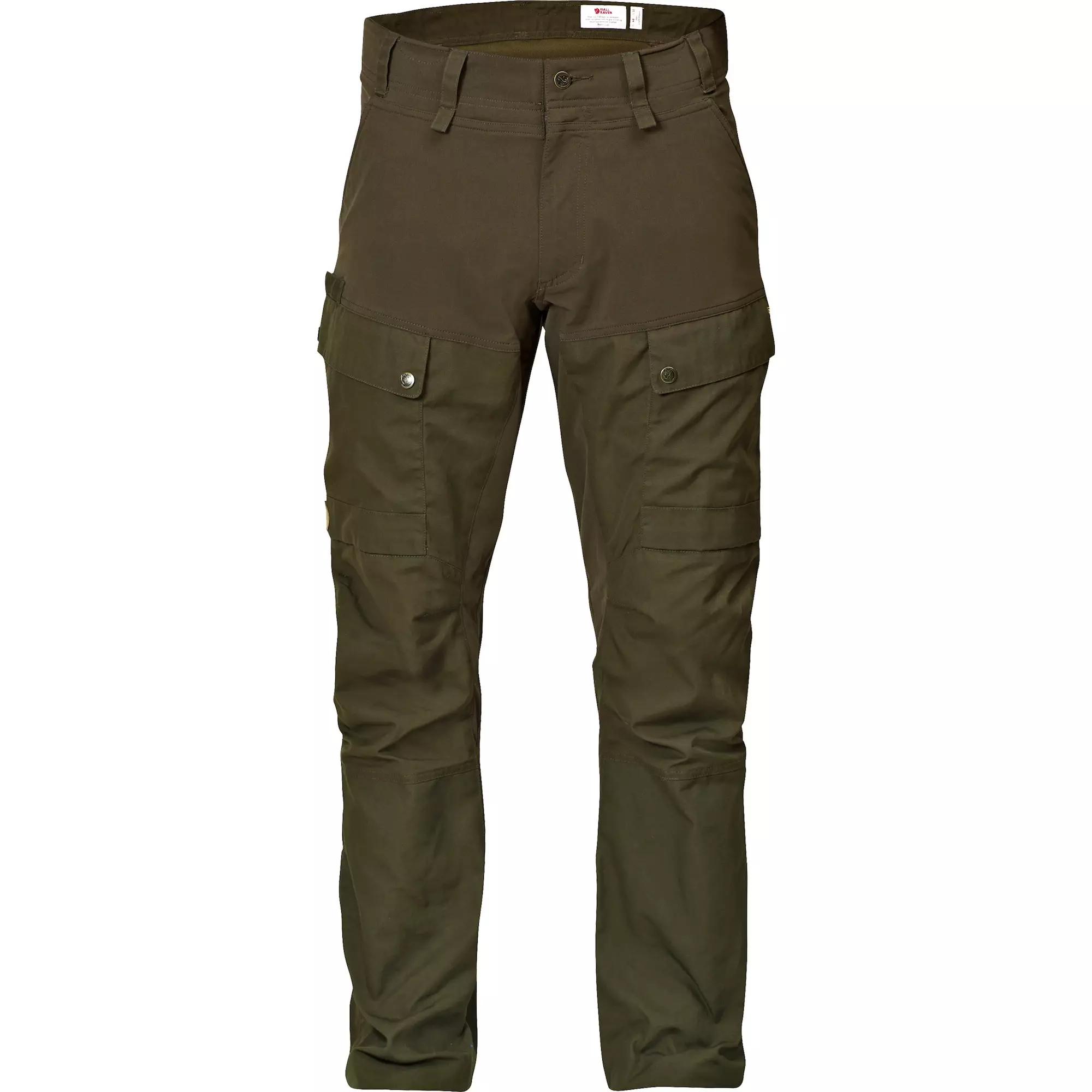 - Valmistettu stretch-kankaasta, jossa G-1000 Silent Eco -materiaalia (kierrätettyä polyesteriä / luomupuuvillaa) kulumiselle alttiissa kohdissa, kuten takamuksessa, etureisissä, taskuissa ja polvissa.