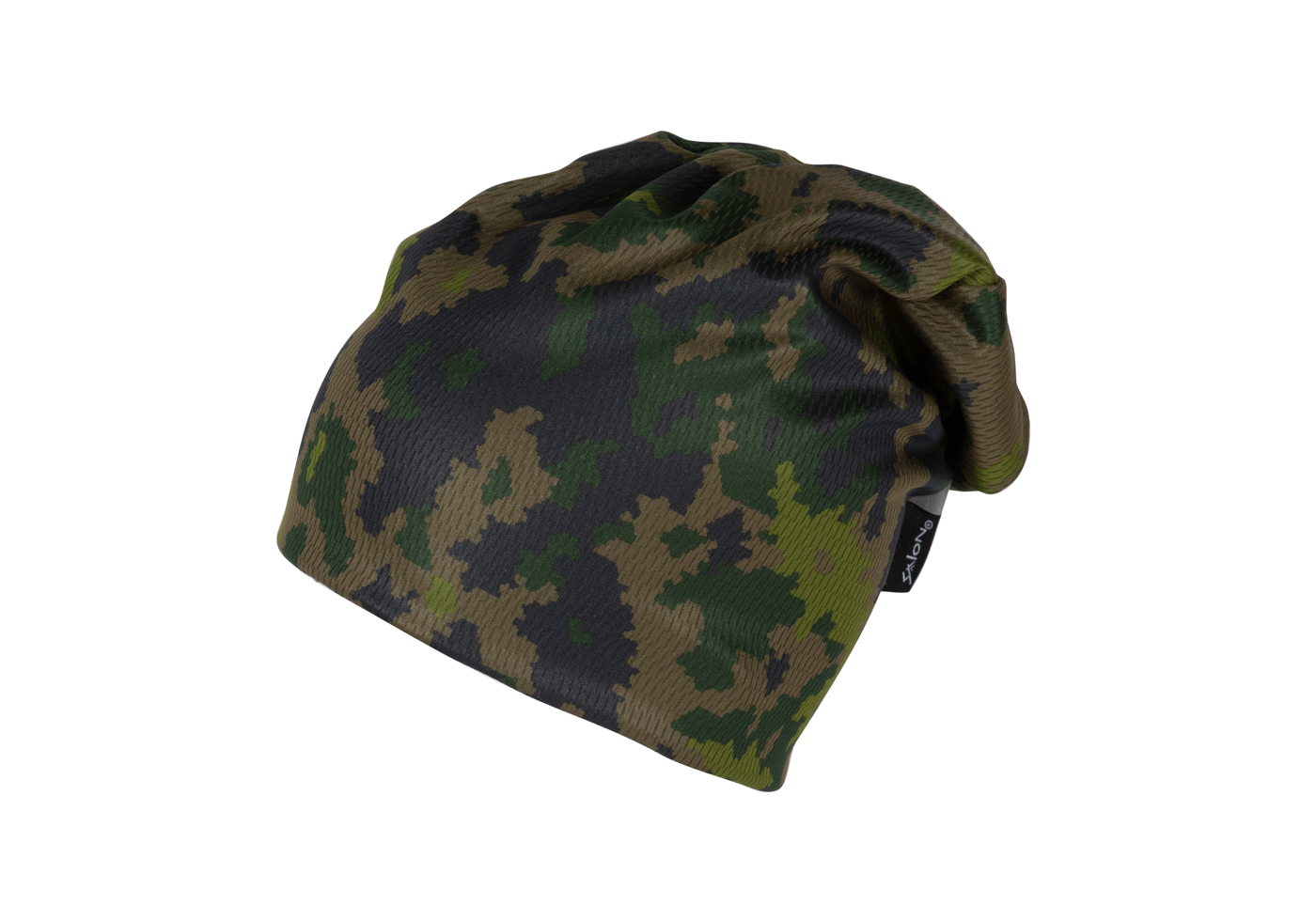 Salon kotimainen maastokuvioinen trikoopipo isommassa koossa. Materiaali on kotimainen Coolmax®-kierrätyspolyesteri. Valmistettu Sastamalassa, Suomessa.