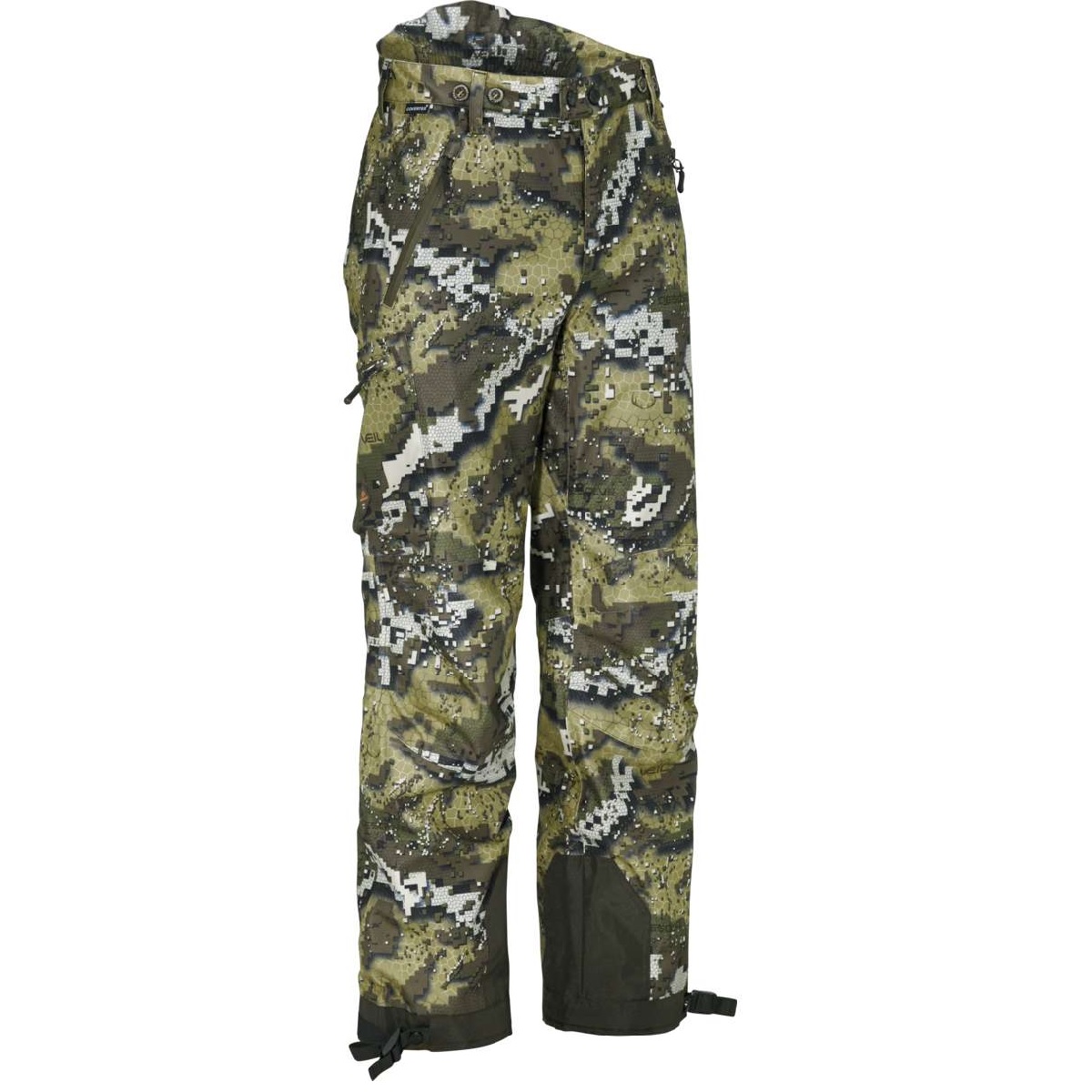 Hiljaiset naisten metsästyshousut Desolve-naamiointikuviolla. Covertex-kalvo tekee housuista tuuli- ja vesitiiviit.