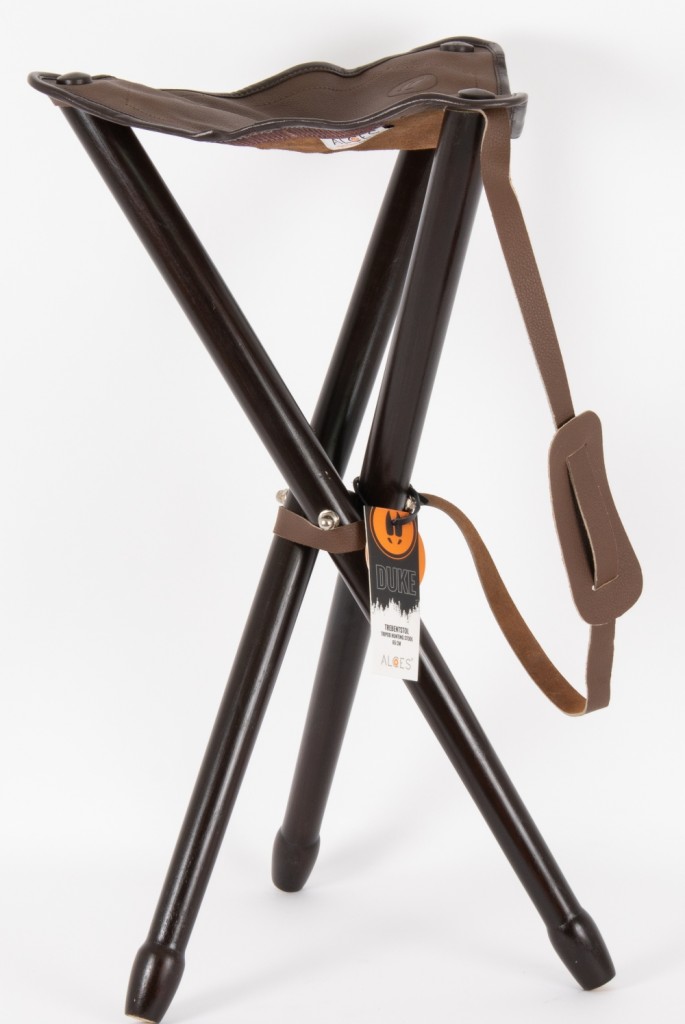 Tukeva retkijakkara joka on valmistettu nahasta ja puusta. Korkeus 65cm. Mukana kantohihna.